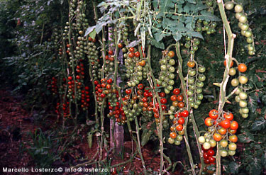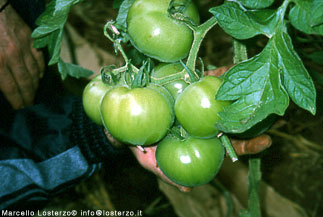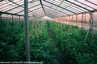 | Alcune immagini dell'azienda F.lli Ferrera. Quando ci siamo conosciuti facevano agricoltura chimica e tra le altre cose usavano il bromuro di metile. Oggi a distanza di 5 anni dall'applicazione del metodo biodinamico il suolo è "lievitato" di ben 25 cm. Le piante di pomodoro a fine stagione arrivano ad avere una lunghezza anche di 20 metri e se si prende un calibro e si misura il diametro del fusto partendo dal colletto della pianta ogni metro fino all'apice si rimane sbalorditi che è sempre regolare. Al primo anno, come è stato effettuato il trapianto dei pomodori, erano molto preoccupati, dato che le piante dopo oltre 20 giorni non accennavano a svilupparsi mentre quelle del vicino, che faceva agricoltura chimica ed aveva la stessa varietà, erano gia alte circa 80 cm. Io gli dissi di non preoccuparsi e di andare a vedere e di confrontare con il vicino l'apparato radicale. Mi richiamò esterrefatto, in 40 anni di orticoltura, neanche suo padre aveva mai visto un apparato radicale così profondamente sviluppato. |