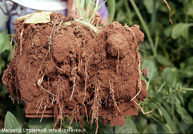 ![]() Ecco un terreno morto ritorna alla vita. Osservate come le radici delle piante lavorino il terreno e il loro colore bianco e la fitta peluria di peli radicali per una profondità di oltre 50 cm. |