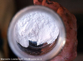 | Il 501 o cornosilice, è invece fatto con dei cristalli di quarzo, i più belli, e macinato finemente. Quindi in primavera viene messo dentro dei corni di vacca lattifera, ed estratto in autunno. Se ne usano 4 grammi in 30 litri di acqua ad ettaro e in linea generale viene distribuito dopo circa20 giorni dal 500 preparato e ripetuto secondo le esigenze colturali. |