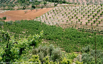Altro pessimo esempio di impianto. L'uomo in questi ultimi 50 anni ha pensato di poter sopraffare la natura ma la natura si è ripresa la rivincita. Osservate a sinistra un frutteto a spalliera e a destra il nuovo impianto che segue criteri biodinamici.
