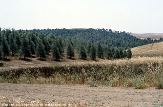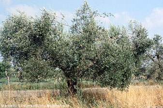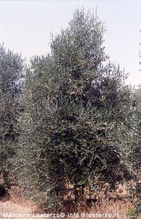 A vederli da lontano sembrerebbe una piantagione di alberi di natale e invece si scopre avvicinandosi che sono olivi sottoposti ad una particolare potatura e ad un sesto d'impianto molto fitto. Il risultato: le piante sono costantemente stressate e ciò è testimoniato dalla rogna che abbonda sui tutti i rami e che esplode ad ogni potatura, potature che possono essere fatte solo da personale specializzato che non si trova con facilità. |